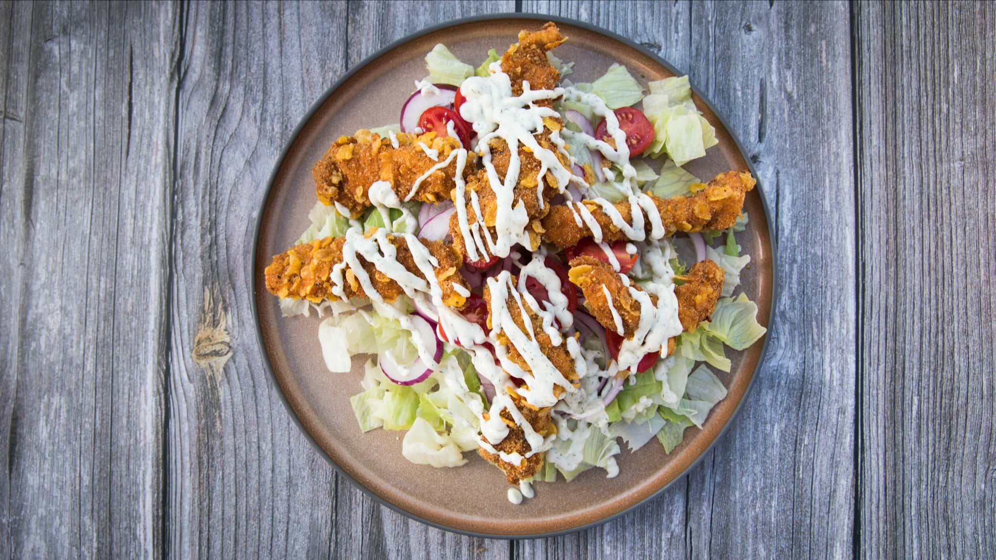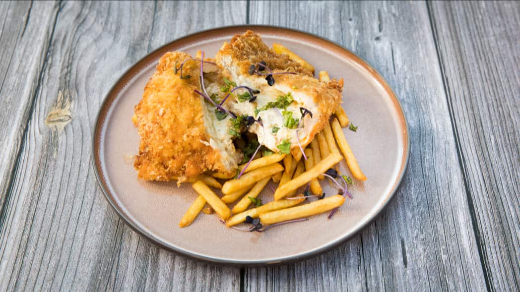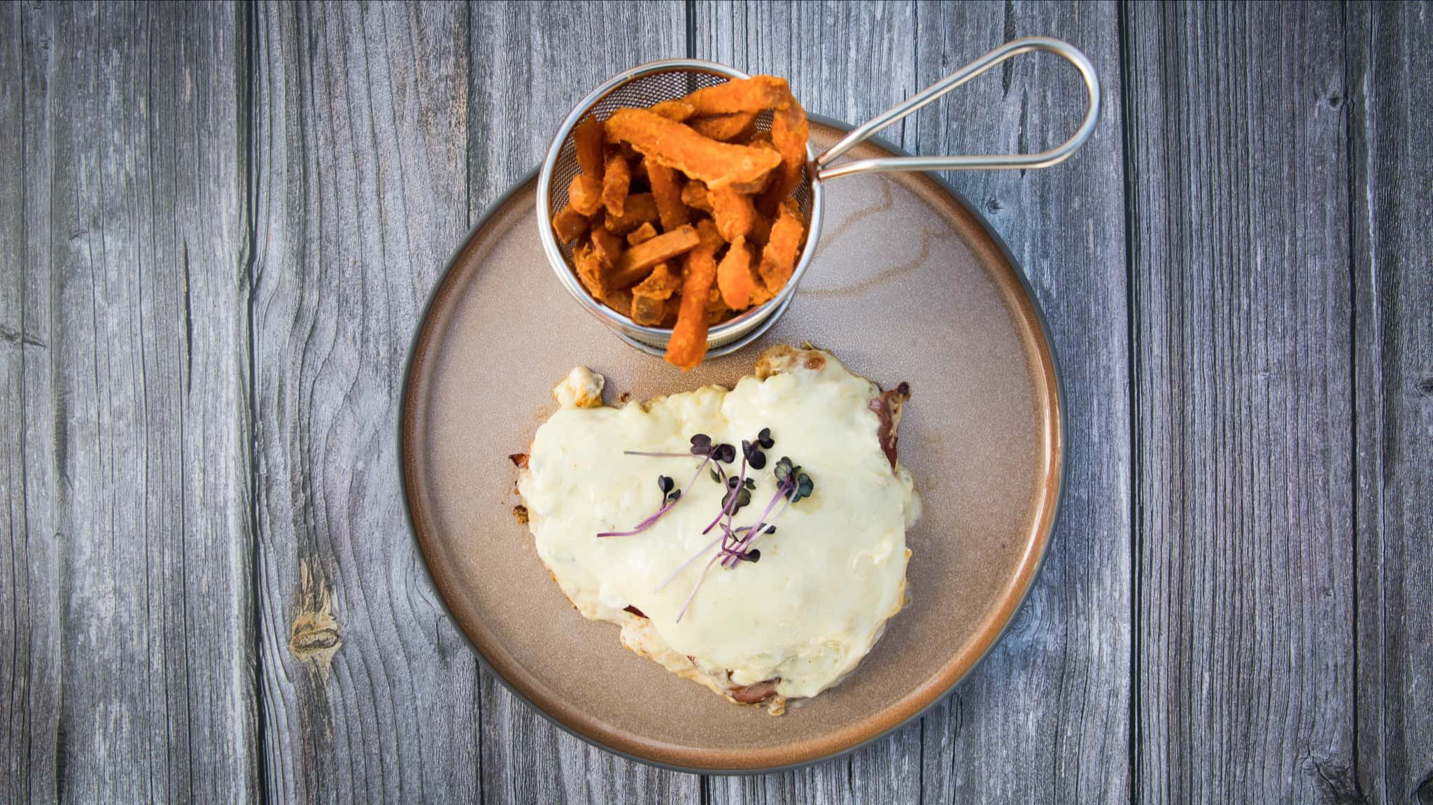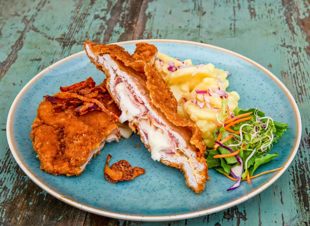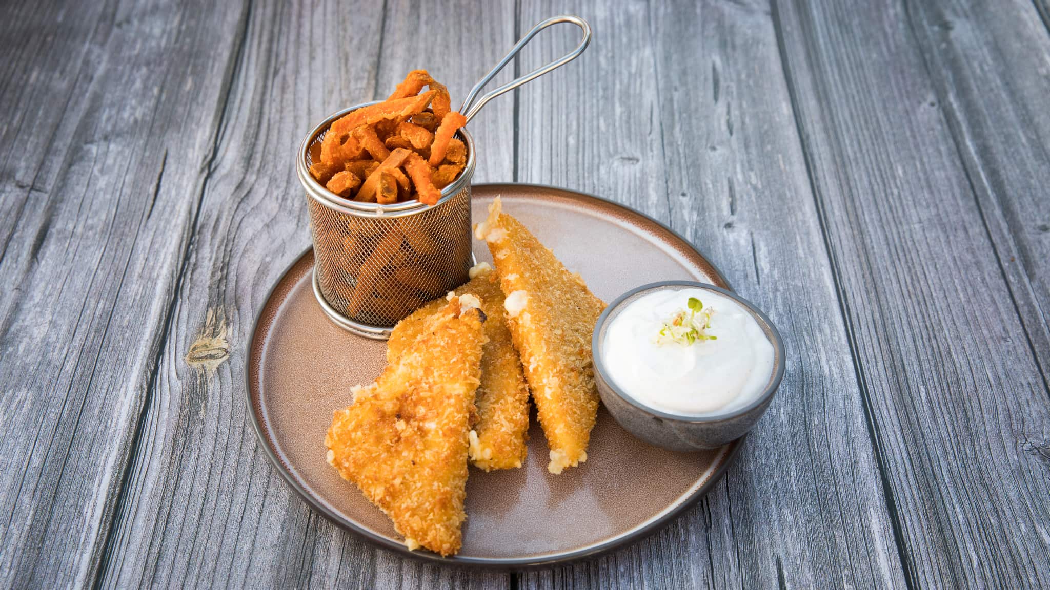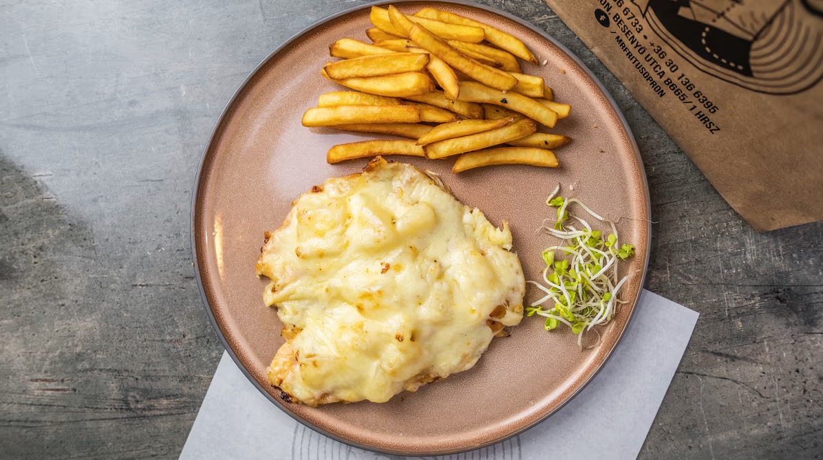burgonyapanír, fokhagymás tejföl, trappista sajt