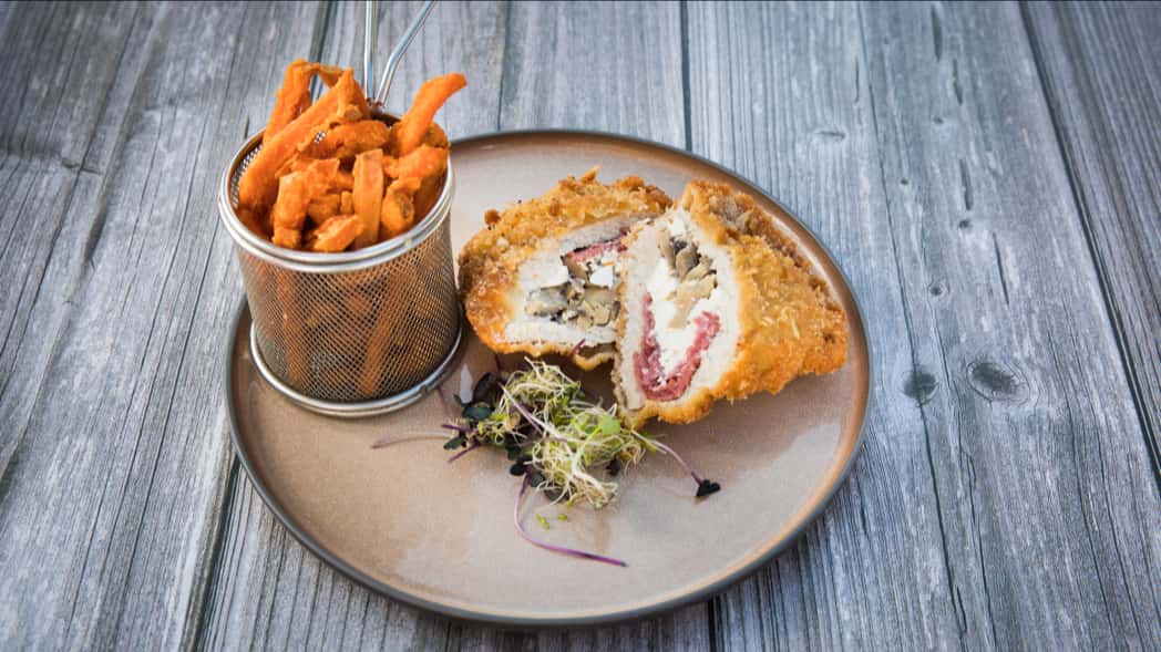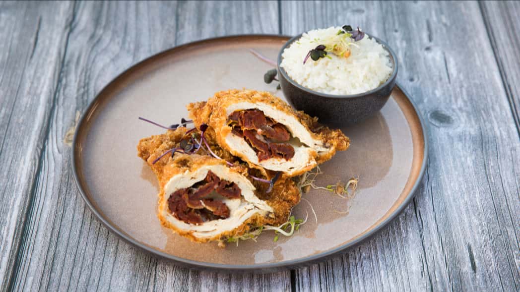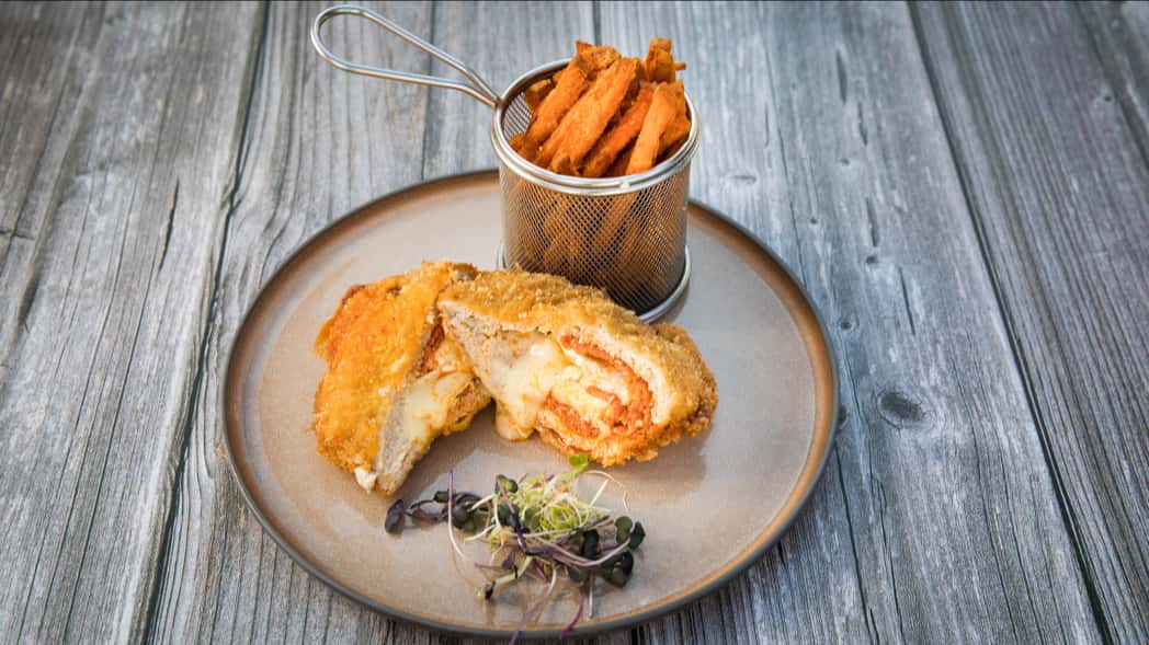 Csirkemell aszalt paradicsommal, mozzarellával bazsalikommal